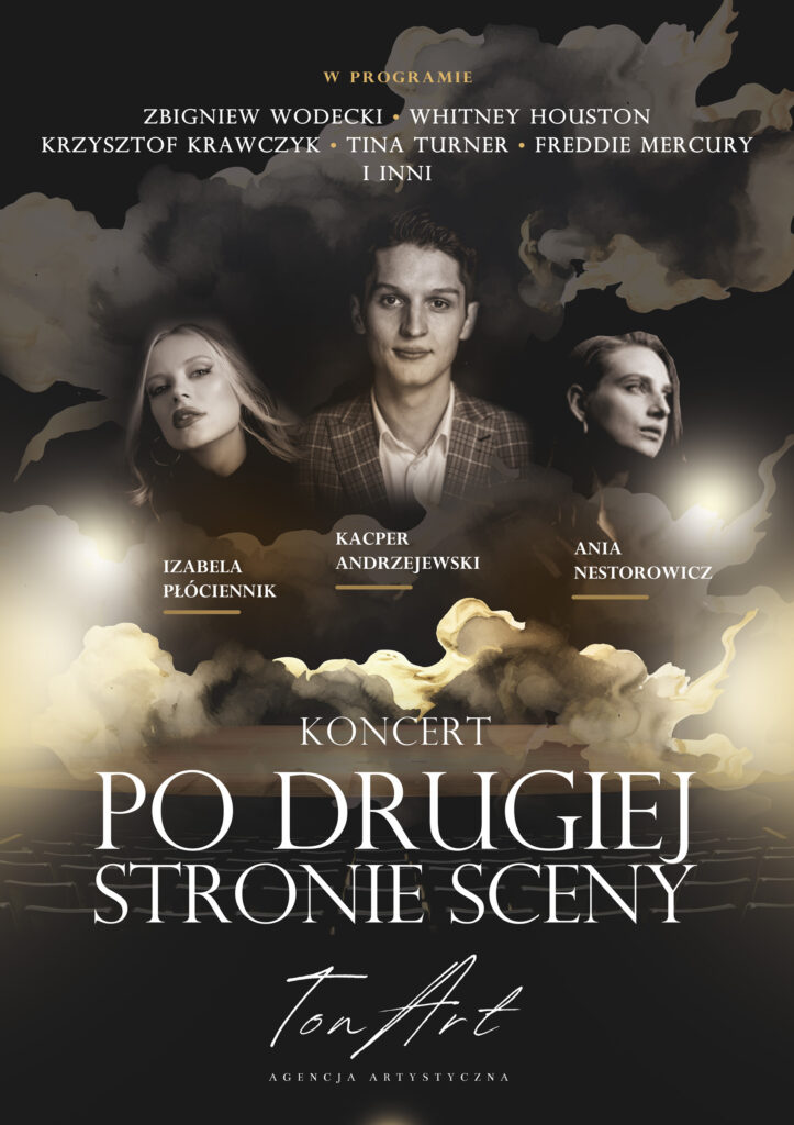 Wspólnie z orkiestrą stworzą wieczór pełen emocji – od nostalgii po radość, od refleksji po czystą koncertową energię. Każdy dźwięk, każda fraza będzie mostem między przeszłością, a teraźniejszością. „Po drugiej stronie sceny” to koncert, w którym każdy znajdzie cząstkę siebie – wzruszenie przy balladach Wodeckiego, radość i taneczną energię Krzysztofa Krawczyka, mocny rockowy temperament Tiny Turner czy ponadczasową siłę głosu Whitney Houston. To spotkanie, które pozwala raz jeszcze przeżyć muzykę artystów, którzy odeszli, ale których twórczość nigdy nie umiera. Jeśli kiedykolwiek marzyłeś, by raz jeszcze usłyszeć wielkie hity artystów, których już z nami nie ma, to ten koncert jest właśnie dla Ciebie. Niech ta noc będzie wyjątkowa !